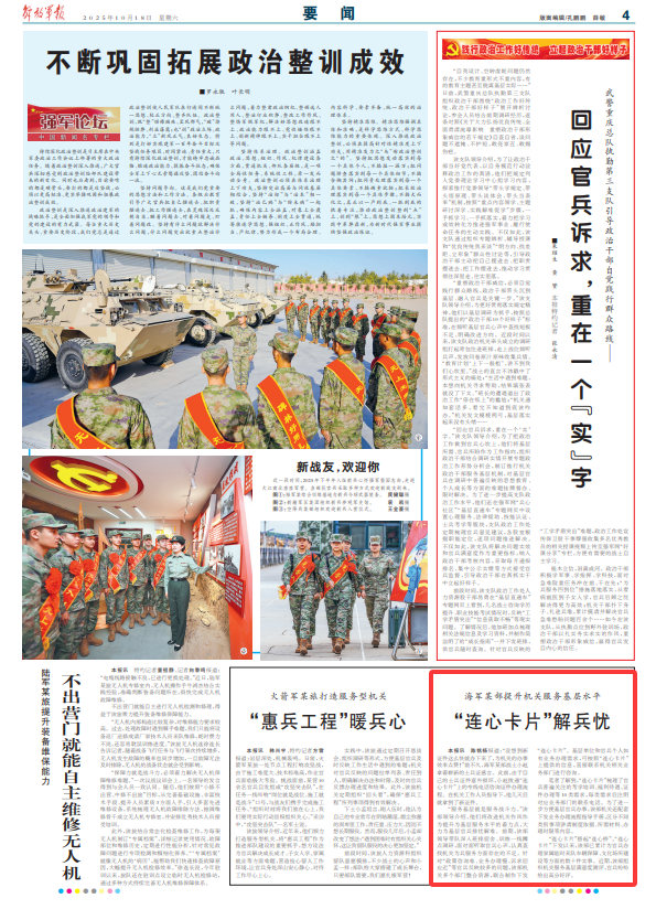 - 不断强化强化政治整训成果■罗永驰叶长明持续深化政治整训是习主席在中央军委政治工作会议上部署的重大政治任务。随着政治整训深入推进,广大官兵深切全面政治整训部队建设带来的新变化。同时也应看到,当前要啃的都2025-10-19