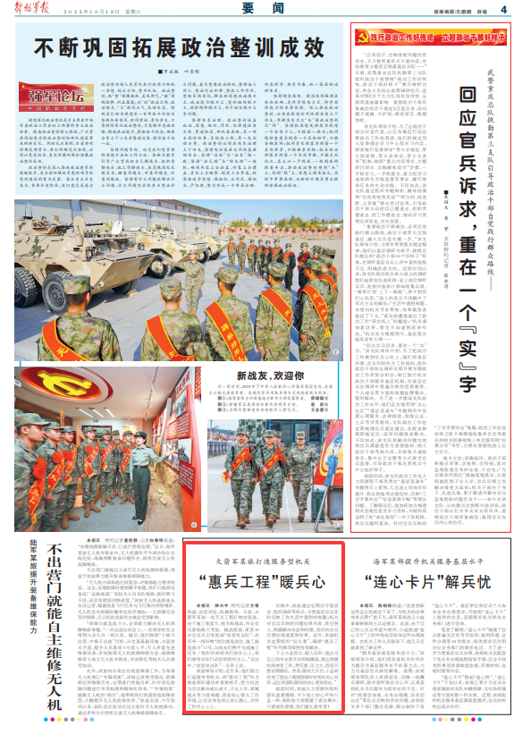 - 火箭军某旅打造服务型机关“惠兵工程”暖兵心解放军报讯 韩兴宇、特约记者方雷报道:岩层深处,机械轰鸣。日前,火箭军某旅一处节点工程打响攻坚战,由于施工难度大、技术标准高,作业官兵面临极大考验。挑战面前,2025-10-19